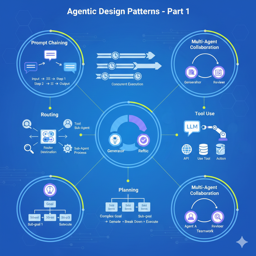 Agentic Design Patterns의 Part 1에서는 지능형 에이전트 시스템을 구축하기 위한 7가지 핵심 디자인 패턴을 다루고 있습니다.